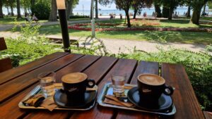 V srdci obľúbeného maďarského letoviska Balatonfüred sa nachádza reštaurácia Balaton Étterem. Toto mesto, známe pre svoje historické kúpele a vínne festivaly, je domovom mnohých pamiatok, ako sú klasicistické domy a Tagore promenáda pomenovaná po slávnom poetovi. Balaton Étterem je reštaurácia s priamym výhľadom na jazero Balaton, čo vytvára dokonalú kulisu pre nezabudnuteľný kulinársky zážitok. Jedno nádherné júlové popoludnie, keď sme si užívali dovolenku pri jazere Balaton, sme zvolili návštevu tejto reštaurácie s cieľom vychutnať si chvíľku pokoja pri šálke kávy.