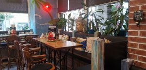 Posledný večer našej dovolenky v Karlových Varoch sme objavili originálny podnik Bali Coffee Bar. Úprimne ma mrzí, že sme túto, povedzme, kaviareň nenašli skôr. Spomínaný Bali Coffee Bar nájdete na ulici Dr. Davida Bechera. Túto kaviareň spoznáte podľa toho, že sa ukrýva v tehlovej budove. Bali Coffee Bar určite neprehliadnete, pretože pred jej hlavným vchodom sa pyšne týčia cudzokrajné palmy. Náhodným okoloidúcim možno palmy nekorešpondujú s touto nenápadnou uličkou, ale keď vstúpite do vnútorných priestorov, pochopíte, že tieto cudzozemské stromy krásne zapadajú do celkového konceptu kaviarne.