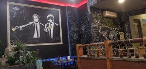 Kaviareň Bali ma exotický výraz. Dizajn tejto prevádzky ma doslova vtiahol do svojho deja. Vstupom do tejto kaviarničky som sa razom preniesla do ďalekých prímorských krajín. To mi v týchto časoch, ktoré cestovaniu neprajú, padlo veľmi vhod. Na stenách sa nachádzajú tehly v kombinácii s čiernymi stenami, na ktoré sa dá písať farebnými kriedami. A ako tak pozerám na steny, musím povedať, že ich potenciál využili na 100%. Na stenách sú zobrazené rôzne kresby, mapy, texty a v neposlednom rade ponukový lístok. Je očividné, že „fantázii sa medze nekladú“. V miestnosti sa nachádzajú obrazy, sudy, črepníková zeleň, sošky, rôzne tabuľky, vankúše, lano, hodiny a veľa iných dekorácií. Za najkrajší dizajnérsky prvok v tejto kaviarni jednoznačne považujem krásny barový pult. V kaviarni je aj Jukebox, kde si hostia radi prehrávajú svoju obľúbenú hudbu. A veľká LED obrazovka slúži predovšetkým na vysielanie športových prenosov. Celý priestor je krásne a farebne podsvietený. Vo veľkých oknách sa nachádzajú svetielka, ktoré tejto kaviarni dodávajú príjemnú atmosféru. Cez deň je kaviareň ideálnym miestom na prácu, alebo na odpočinok. Večer podnik ožíva atmosférou večernej party.