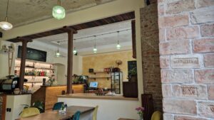 Podnik vás okamžite vtiahne do sveta pohodlia a príjemnej elegancie. Interiér BarLa je oslavou jemných detailov a lásky k rustikálnemu dizajnu. Steny, zdobené surovou tehlou a starostlivo vybranými dekoráciami, vytvárajú príjemnú kombináciu tradičného a moderného štýlu. Drevené stoly a pohodlné čalúnené stoličky v odtieňoch modrej a béžovej lákajú k dlhému posedeniu, či už pri šálke kávy alebo dobrom jedle. Všetko je doladené drobnými kvetinovými dekoráciami, ktoré na stoloch vytvárajú príjemný kontrast a ešte viac umocňujú pocit domova. Ako sme vchádzali do kaviarne, nemohli sme si nevšimnúť útulnú letnú terasu, ktorá ponúka jedinečný výhľad na pulzujúcu pešiu zónu Piešťan. Cez veľké okná sme mali možnosť sledovať, ako sa mesto prebúdza do ďalšieho dňa plného života. Toto miesto je ideálnym útočiskom pre tých, ktorí chcú uniknúť zhonu každodenného života a užiť si chvíľku pokoja.