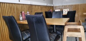 Pred reštauráciou sa nachádza príjemná letná terasa s pohodlným sedením, čo je ideálne miesto na vychutnanie si jedla na čerstvom vzduchu. Terasa ponúka pokojnú atmosféru, ktorá je skvelým miestom na relaxáciu po prechádzke po pobreží. Interiér reštaurácie je zariadený v jednoduchom, ale veľmi útulnom štýle. Steny zdobí drevené obloženie, ktoré vytvára príjemný a prírodný dojem. Obrazy s plážovými motívmi umocňujú atmosféru prímorského prostredia a pripomínajú, že sa nachádzate na jednom z najznámejších britských pobreží. Nábytok je pohodlný, stoly sú drevené a stoličky čalúnené, čo zaručuje komfort pri sedení. Čistota a poriadok v priestore ešte viac zvyšovali celkový príjemný dojem z nášho zážitku.