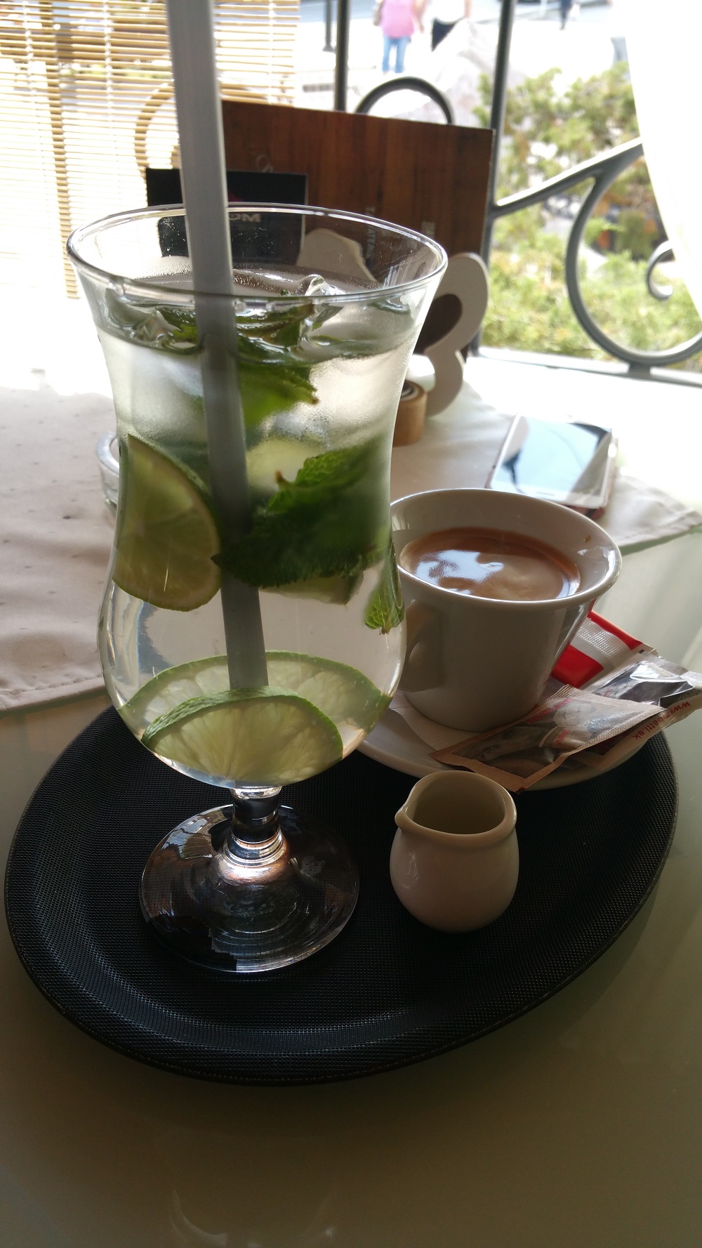 Káva chutila lahodne, nebola horká a pila sa výborne. Čo sa týka nealkoholického mojita, bola som celkom sklamaná lebo chutil ako čistá voda s jemnou príchuťou limetky. Levanduľová limonáda bola príjemne sladká, s príchuťou levandule. Predstavte si vôňu levandule a premeňte to na chuť. Bola naozaj výborná. Čo by som jedine vytkla by bolo, že bola vlažná. Stačilo by pár kúskov ľadu, nakoľko bolo teplo a bola by dokonalá.
