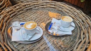 V Cafe Cairo si môžete vychutnať nielen jedinečnú atmosféru, ale aj bohatú ponuku jedál a nápojov. Na raňajky vás čakajú čerstvé toasty, krehké croissanty plnené rôznymi lahôdkami či dezerty. Nápojový lístok ponúka osviežujúce limonády pripravené z čerstvých surovín, ktoré vás príjemne osviežia v horúcich dňoch. Pre milovníkov dobrej kávy je tu cappuccino, ktoré sme si, samozrejme, nemohli nechať ujsť. Cappuccino bolo servírované s eleganciou na kovovom podnose spolu s pohárom čerstvej vody. Pena bola dokonale našľahaná a jemný vzor latte art dodal káve estetickú dokonalosť. Chuť? Bohatá, harmonická a jemná, s náznakom orieškov, akoby vás objala v dlani. Tajomstvom tejto výnimočnej chuti je káva značky J.J. Darboven, ktorá má svoje korene už v roku 1866 v Nemecku. Táto značka, známa svojou kvalitou a záväzkom k spravodlivému obchodu, pridáva káve nielen výnimočný charakter, ale aj kus histórie. Čo však robí Cafe Cairo výnimočným, nie je len jeho prostredie či ponuka, ale aj milý a ochotný personál. Ak hľadáte miesto, kde sa dá na chvíľu zastaviť, užiť si kvalitné nápoje, či len utiecť pred svetom s dobrou šálkou kávy, Cafe Cairo je tou správnou voľbou. Toto miesto nie je len kaviareň, je to zážitok, ktorý si budete chcieť zopakovať. Zavítajte sem, ochutnajte a nechajte sa očariť jedinečnou atmosférou. Piešťany majú svoje tajomstvá a Cafe Cairo je jedným z nich.