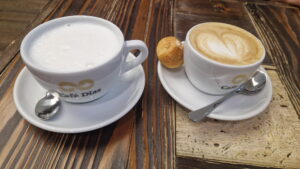Po dlhšom čase sme sa rozhodli navštíviť kaviareň Café Dias v nákupnom centre Aupark v Piešťanoch. Kaviareň je súčasťou najväčšej siete kníhkupectiev na Slovensku – Panta Rhei. Táto kaviareň s knižnicou nás zaujala svojím konceptom, kde spojenie lahodnej kávy a dobrých kníh vytvára perfektné miesto na relax a oddych. Café Dias má svoj názov podľa slávneho portugalského moreplavca Bartolomea Diaza, ktorý ako prvý oboplával Mys Dobrej nádeje. Tento názov nesie symboliku objavovania nových svetov, čo sa perfektne hodí k atmosfére, ktorú táto kaviareň ponúka. Každý dúšok kávy je akoby nové cestovateľské dobrodružstvo, čo dáva celej návšteve kaviarne neopakovateľný zážitok.