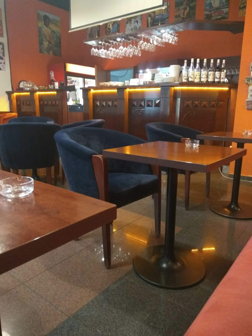 Steny kaviarne boli zdobené obrazmi kubánskeho revolucionára Che Guevara. Na stene bol pripevnený LCD televízor a hral nejaký seriál, ktorý ma vôbec nebavil. Celý priestor bol na môj vkus príliš tmavý. Farebne bol ladený do okrova, červena a tmavo modra. Kreslá boli pohodlné. V rohu kaviarne bol masívny drevený bar. V kaviarni ma čašníčka pomerne rýchlo obslúžila, bola milá a usmievala sa. Čo ma však zarazilo, nepriniesla mi žiadny nápojový lístok, takže som nemala žiadnu predstavu o ponuke, ani o cenách. Ako som si neskôr všimla, tak isto to spravila pri ostatných zákazníkoch kaviarne.