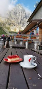 Samozrejme, v Tatrách je počasie nevyspytateľné, takže za pár minút sa štít stratil za rúškom tajomstva v hustej hmle. Aj z tohto dôvodu sú Tatry také zaujímavé, pretože neviete, čo od nich môžete behom pár minút čakať. Poprechádzali sme sa okolo Skalnatého plesa, išli sme sa pozrieť k Observatóriu Astronomického ústavu SAV, prešli sme aj ku Skalnatej chate. Potom sme sa rozhodli, že skočíme na zákusok a šálku kávy do Café Panorama.