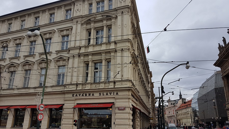 Počas výletu v stovežatej Prahe sme nezabudli navštíviť tradičnú kaviareň Slavia. Slavia je kaviareň v srdci historickej Prahy. Nachádza sa na brehu Vltavy oproti Národnému divadlu, pyšne sa týči na rohu Národnej triedy a Smetanovho nábrežia v Paláci Lažanských v Starom Meste v mestskej časti Praha 1.