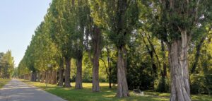 Kaviareň skrytá pod korunami stromov: