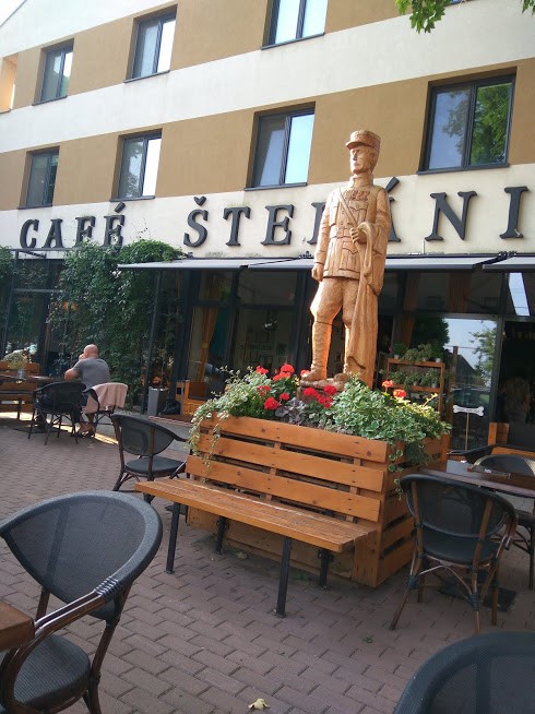 Aby som sa ale ešte vrátila k interiéru. Históriou tu dýcha takmer každý kút. Rekvizity, ktoré tu nájdete, sa s citom dopĺňajú. Človek má chuť začať pátrať po minulých krokoch tohto významného človeka. Môžete tu nájsť napríklad repliku lietadla a uniformy, poštové známky s jeho vyobrazením, mapu jeho ciest po svete . Kaviareň je opticky rozdelená do niekoľkých častí, čo navodzuje pocit súkromia. Môžete si vybrať posedenie na stoličkách, či pohodlnom gauči. Čo veľmi oceňujem, Štefánik je kaviareň, ktorá má príbeh. Nieje to len taká obyčajná kaviareň. Ak sem už raz zavítate, budete sa chcieť vrátiť.