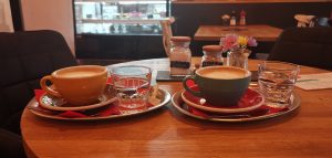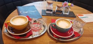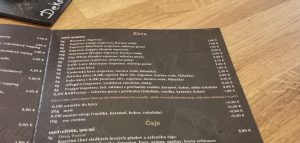 Z ponukového lístka sme si vybrali cappuccino v hodnote 2,10€. V tejto kaviarni si potrpia na kvalitné a lokálne suroviny, čo sa pochopiteľne odzrkadľuje na konečnej cene. Kávičku pripravujú v kvalitnom kávovare La Cimbali M 100. Káva má aj vďaka nemu hustú konzistenciu. Pripravujú vlastnú výberovú kávičku 100% Arabicu. Cappuccino bolo veľmi chutné a krémové. Za príplatok vám vedia kávu pripraviť bezkofeínu a bezlaktózy, poprípade so sójovým mliekom. Kávu servírujú v modernej farebnej šálke na striebornom podnose s pohárom vody a napolitánkou. Pokiaľ si chcete osladiť život, na stole nájdete hnedý a biely cukor. Aj keď pijem kávu bez cukru, veľmi oceňujem, že má zákazník možnosť výberu. V ponuke majú rôzne alkoholické, nealkoholické a teplé nápoje. Palacinky pripravujú v sladkom a aj v slanom prevedení. Slanú palacinku ponúkajú napríklad s kozím syrom, vlašskými orechmi, provensálskym korením, granátovým jablkom + môžete si vybrať rukolu alebo špenát. Sladkú palacinku pripravujú napríklad s čučoriedkami a s vanilkovým krémom alebo tvarohovú s horúcim lesným ovocím. Ako som sa mohla presvedčiť na vlastné oči, palacinky skvelo vyzerajú a určite aj vynikajúco chutia. V tejto kaviarni si veľmi potrpia na zdravé raňajky v podobe napríklad pohánkovej alebo ovsenej kaše s orieškami a veľkým množstvom ovocia. Ďalej ponúkajú bylinkové čaje, rôzne kávy, alkoholické a nealkoholické nápoje, raw koláče, dezerty, zmrzlinový pohár, mini veterníky a veľa iného. Personál v Caffé & Crepes je veľmi ochotný. Ak ma hra osudu opäť zaveje do tejto palacinkárne, určite neodolám a ochutnám ich vyhlásenú palacinku. Len neviem, či slanú alebo sladkú?