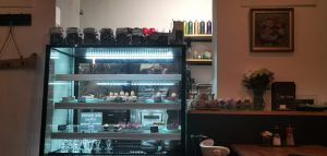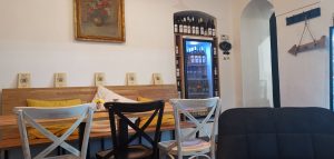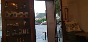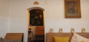 V tento spomínaný deň nás do Trenčína zaviedli pracovné povinnosti. Pracovné a zároveň upršané poobedie sme si spríjemnili pri šálke kávy v kaviarni Caffé & Crepes, ktorá sa nachádza na Mierovom námestí 1. Pre zaujímavosť, Caffé & Crepes nájdete aj na Štrbskom plese. Do kaviarne Caffé & Crepes sme zašli, lepšie povedané zabehli, skôr náhodne. Vonku lialo, tak sme vbehli do prvej kaviarne, ktorá sa nám ponúkla. A v konečnom dôsledku musím poznamenať, že to bolo dobré rozhodnutie. Jedná sa o malú, ale útulnú a štýlovú kaviarničku v priamom centre mesta. Už samotný názov prezrádza, že kaviareň je spojená s palacinkárňou. Kaviareň Caffé & Crepes v Trenčíne otvorili 26.12.2019. Kaviareň je síce zariadená moderne, ale priestor dopĺňajú starožitné obrazy. V miestnosti sa nachádzajú vitríny, v ktorých sú umiestnené fľaše s vínom a alkoholom, bylinkové zmesi, káva, hrnčeky a taktiež dekorácie. Zaujalo ma, že v tejto malej kaviarničke vytvorili priestor pre deti v podobe pekného detského kútika. Cez veľké presklené okná sme mohli sledovať meniacich sa ľudí na Mierovom námestí. V letných mesiacoch táto kaviareň disponuje terasou, ktorá ponúka výhľad priamo na dominantu mesta, ktorou je Trenčiansky hrad.