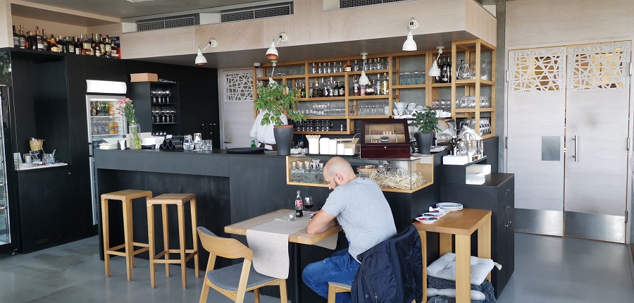Za pekný dizajnový kúsok musím označiť barový pult. Miestnosť je celá presklená a tým pádom ponúka príjemný výhľad. V letných mesiacoch si zákazníci radi vychutnávajú svoju kávu alebo drink na spomínanej terase. Na terase je okrem stolov aj dlhý múrik lemovaný dreveným obložením. V konečnom dôsledku, útroby kaviarne, ale aj vonkajšia terasa pôsobia príjemne.