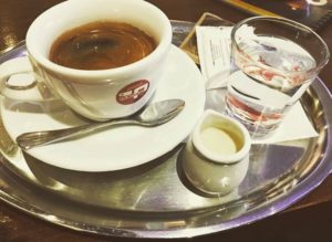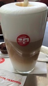 Ja som si objednal presso a latte. Obe kávy majú základ z kávy značky pascucci. Pascucci je talianska značka káv, ktorá má korene až do 20. storočia a dlhodobo patrí k špičke káv na trhu, vyznačuje sa krémovou chuťou i penou. Presso malo veľmi dobrú krémovú chuť, ťažko povedať či to je kávovarom alebo zrnami kávy, naozaj by bola veľká škoda zajedať kávu zákuskom. Vtedy by si nikto nevychutnal jej dokonalú chuť. Latte je podávané v 4dcl pohári. Cez priehľadné sklo bolo pekne vidieť penu, a to, čo je pri latte hlavnou vecou – preseknutie medzi kávou a ochuteným mliekom. Toto latte nieje potrebné dochucovať cukrom ani ničím iným. Je príjemne sladké a pôsobí veľmi upokojujúco. Personál prišiel vždy ochotne a hlavne s úsmevom.
