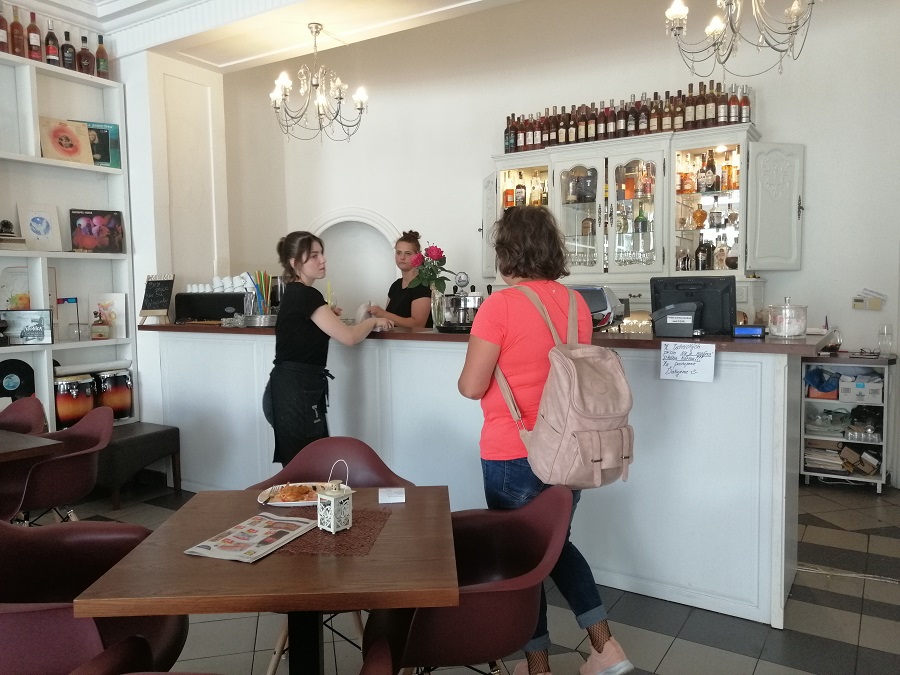Ponuka v kaviarni ej dosť veľká. Okrem základných druhov káv môžete ochutnať aj zaujímavé kávy ako ruská káva a podobne, ktoré sú spojené rovno s alkoholom. My sme toľko neexperimentovali, keďže nás čakala ešte návšteva priateľa. Ale za pokus by to niekedy stálo. Každopádne, my sme boli spokojné. A čo sa týka iných vecí, tak toto je miesto, kde sa dá aj najesť. Rovnako tak sú tu vraj výborné aj palacinky. Tiež mali v ponuke aj rôzne alko či nealko nápoje, drinky a slané drobnosti.