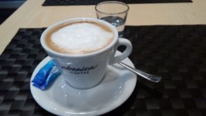 Obsluhe nemám, čo by som vytkla, keďže bola promptná a milá. Každý stôl bol dôkladne uprataný a čistý, čo samozrejme hodnotím známkou 1. Ako už tradične, objednala som si cappuccino. Najskôr pár slov k spôsobu servírovania. Kávu mi priniesli takmer okamžite, avšak bez vody, tú mi doniesli asi o minútku neskôr. Žiadny veľký prešľap, myslím si však, že také štandardné podávanie kávy s pohárom vody na tácke by proces jednak urýchlilo a za ďalšie, určite to pôsobí profesionálnejšie.
