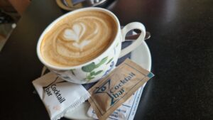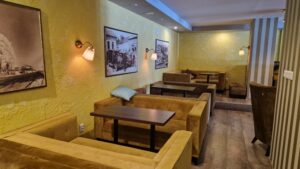 Nápojový lístok Cocktail Baru nás ohromil svojou rozmanitosťou. V ponuke sú klasické koktaily ako Mojito či Tequila Sunrise, ale aj špeciality s lokálnym nádychom, medzi ktoré patria slovenské nápoje a rumové či ginové variácie. Samozrejme, nechýbala ani sekcia kvalitnej kávy, a tak sme si objednali cappuccino. Toto cappuccino bolo podávané v elegantnej keramickej šálke s jemným vzorom a chutilo výborne – bohatá krémová pena a jemná, orieškovo-čokoládová chuť zanechali výborný dojem. Okrem toho sme si všimli, že v ponuke majú aj croissanty, panini a drobné snacky, ako sú pistácie, ideálne na ľahké zahryznutie k nápojom. Personál bol ochotný. Po oddychu a doplnení energie v tomto útulnom prostredí sme sa s dobrým pocitom vrátili k našim potulkám Námestovom plní dojmov z tohto čarovného miesta.