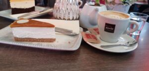Pulty cukrárne sú plné lákavých dezertov, ktoré sú skutočnou pastvou pre oči aj chuťové bunky. Sortiment je mimoriadne bohatý, ponúka zákusky rôznych farieb, tvarov a chutí. Či už máte chuť na tradičný maďarský koláč, krémovú tortu alebo jemný penový dezert, výber je taký rozmanitý, že si tu každý nájde to svoje. Okrem klasických sladkostí cukráreň ponúka aj možnosti pre tých, ktorí dbajú na špeciálnu stravu – paleo dezerty a bezlepkové koláče sú pripravené z tých najkvalitnejších surovín, takže nikto nemusí byť ochudobnený o tento gurmánsky zážitok. Kuglóf však nie je len o sladkostiach. Nápojový lístok tejto cukrárne je rovnako bohatý a lákavý. Okrem aromatickej talianskej kávy, ktorá vás zahreje počas chladných zimných dní, si môžete vychutnať aj výber domácich sirupov a kvalitných čajov, ktoré sú pripravené s rovnakou starostlivosťou ako dezerty. V horúcich letných mesiacoch zas ponúkajú osviežujúcu ľadovú kávu, ktorá je ako stvorená na uhasenie smädu a doplnenie energie počas dlhých prechádzok mestom. Keď sme navštívili cukráreň Kuglóf, rozhodli sme sa ochutnať cappuccino, ktoré bolo servírované s eleganciou. Káva bola lahodne krémová s jemnou penou na povrchu, ktorá sa rozpúšťala na jazyku. Jej vôňa bola intenzívna a plná, čo len umocnilo náš zážitok. Kávu dopĺňali lahodné zákusky, ktoré boli nielen krásne na pohľad, ale aj dokonale vyvážené v chuti. Servírovanie bolo precízne, každý detail bol premyslený, od usporiadania na tanieri až po jemné dekorácie, ktoré dopĺňali celkový dojem. Káva, ktorú v cukrárni ponúkajú, pochádza od renomovanej talianskej značky Perte. Cukráreň Kuglóf je miestom, kde si môžete vychutnať skvelú kávu a dezerty a kde sa zastaví čas, aby ste si mohli vychutnať každý okamih.