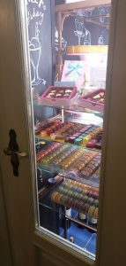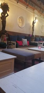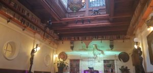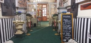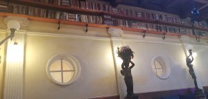 Vstup do kaviarne je taký zaujímavý, že určite minimálne priláka vašu pozornosť. Vo vestibule vás upúta veľké množstvo kníh, sošiek a rôznych dekorácií. Vo večerných hodinách vás do tohto podniku bude lákať biely nápis Divná Pani CAFFE LOUNGE A JAZZ BAR, ktorý svieti priamo na chodníku pred vstupom do kaviarne. Pre zaujímavosť, Divná Pani ponúka aj ubytovanie – Divná Pani Luxury Gallery Rooms. Ponúkajú desať originálnych izieb – galérií s neopakovateľnou atmosférou. Jedná sa o nový a zároveň jediný typ galerijného konceptu ubytovania na Slovensku. Jednotlivé izby sú zariadené v rozličných umeleckých štýloch. Čiže nielen miestnosti v kaviarni, ale aj každá izba je zariadená svojsky a samozrejme krásne. Pokiaľ by ste si chceli o tejto jedinečnej kaviarničke prečítať ešte o čosi viac, pridávam odkaz na moju predošlú recenziu: https://salkakavy.sk/divna-pani-caffe-banska-stiavnica/