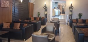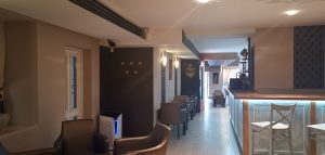 DUBAI CAFE nájdete priamo na Mierovom námestí. Mierové námestie je hlavné námestie v historickom centre, v mestskej časti Stred. Nad námestím sa pyšne vypína majestátny Trenčiansky hrad. Trenčiansky hrad je dominantou nielen Trenčína, ale aj celého Stredného Považia. Hrad je národnou kultúrnou pamiatkou. Pre DUBAI CAFE sme sa rozhodli predovšetkým kvôli krytej a vyhrievanej terase. Z terasy sa naskytá prekrásny výhľad najmä na Kostol sv. Františka Xaverského. Jedná sa o jezuitský, neskôr piaristický kostol, ktorý bol vybudovaný v rokoch 1653 – 1657 v ranobarokovom štýle podľa vzoru kostola sv. Františka Xaverského vo Viedni. Terasa je zariadená ratanovým nábytkom. Taktiež na terase nájdete deky, vankúše a elektrické ohrievače. Interiér kaviarne, ako aj jej samotný názov, majú exotický nádych. Vnútorné priestory sú zariadené pekne a moderne. No na môj vkus je priestor ladený v tmavých farbách. Na letnej terase sa nám však sedelo príjemne.
