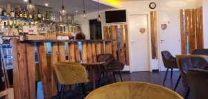 Budova tejto kaviarne má atypický tvar. Za veľkú výhodu považujem, že je kaviareň celá presklená a ponúka tak pekný výhľad na okolitý svet. Kaviareň Pod Lipou je maličká, ale zato utešená kaviareň. V letných mesiacoch disponuje terasou, ktorú hostia radi využívajú. Priestor je zariadený moderne a vkusne. Dominujú tu odtiene hnedej farby. Na sedenie použili tmavohnedé a bledohnedé kreslá a doplnili ich o guľatý stôl. Na povrchu stola je sklo a vyzerá to veľmi pekne. Na stenách, ako aj na barovom pulte je drevo skombinované so sklom, čo vyzerá veľmi dizajnovo a nadčasovo. Barový pult aj napriek tomu, že je malý, je dominantou miestnosti. Na zemi je hnedá dlažba, čo považujem za veľmi praktické riešenie. Kreslá, v ktorých sme sedeli, boli veľmi príjemné a pohodlné, priznám sa, že by som si jedno kreslo s radosťou odniesla aj domov. Espresso pod Lipou má veľmi dobrú atmosféru.