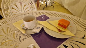Ponuka bola skutočne pestrá a lákavá. Ochutnať sa dali rôzne polievky – od tradičných vývarov až po moderné krémové variácie. Sviatočné jedlá ako kapustnica, pečené mäso, ryby či modernejšie prevedenia tradičných receptov boli pripravené s precíznosťou a nápaditosťou. Pre milovníkov dobrôt nechýbali polievky, sviatočné menu, chrumkavé lokše plnené rôznymi náplňami, voňavé pagáče a jemné palacinky. Sladkú ponuku tvorili bohato zdobené koláče, buchty, nádherné dezerty a tradičné zákusky, ktoré svojou chuťou a vzhľadom očarili návštevníkov. Ponuka nápojov bola rovnako pestrá. Hostia si mohli vychutnať alkoholické aj nealkoholické nápoje, horúce čaje, kávu, čokoládu, ale aj kvalitné vína, ktoré krásne dopĺňali servírované pokrmy. Počas našej návštevy sme zavítali do dvoch kaviarničiek, ktoré boli ukážkou šikovnosti a kreativity študentov. V prvej kaviarni sme si vychutnali silné a lahodné espresso. K tomu sme si dali tradičný punčový rez – jemný šťavnatý dezert s punčovou chuťou, ktorý dokonale dopĺňal aromatické espresso. Servírovanie bolo elegantné a precízne, pričom vkusné prestieranie dotváralo sviatočný dojem. Druhá kaviareň nás očarila svojou atmosférou a krásne pripravenými nápojmi. Objednali sme si tu cappuccino a babyccino, ktoré boli servírované s nádherným latte art. Na hladine cappuccina sa vynímal jemný kvetinový vzor, ktorý bol dôkazom precíznej práce a šikovných rúk študentov. Babyccino, ako bezkofeínová alternatíva, bolo rovnako krásne pripravené a potešilo nielen deti, ale aj tých, ktorí obľubujú jemnejšie nápoje. Káva bola pripravená z kvalitnej kávy značky Lot Coffee Roastery. Celkový dojem dopĺňala sviatočná dekorácia – sviečka v skle a malý keramický vianočný stromček, ktorý dodával celému priestoru teplo a útulnosť. Gastro Vianoce boli aj tento rok výnimočným podujatím, ktoré spájalo tradíciu, modernú gastronómiu a jedinečnú atmosféru. Študenti školy ukázali nielen profesionalitu, ale aj veľkú dávku kreativity a vášne pre gastronómiu. Pre návštevníkov to bola príležitosť ochutnať jedlá a nápoje pripravené s láskou a precíznosťou, a zároveň zažiť predvianočnú pohodu v krásnom prostredí. Odchádzali sme plní chutí, vôní a nezabudnuteľných zážitkov, pričom už teraz sa tešíme na ďalší ročník tohto úžasného podujatia.