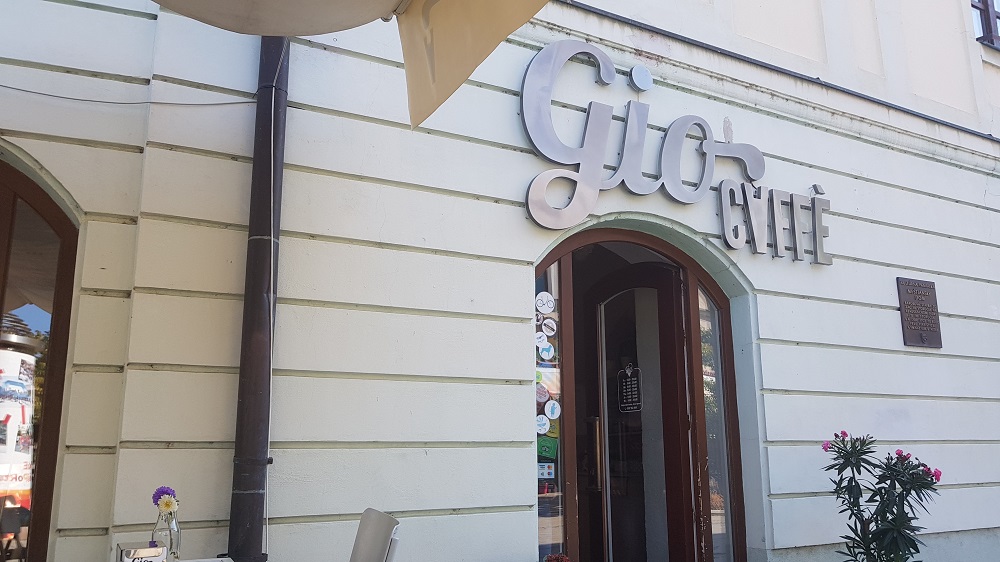 Kaviareň Gio caffe sa nachádza v malej uličke v Nitre. Ide o veľmi malú a útulnú kaviareň, ktorú som sa rozhodla navštíviť pri mojej zastávke v Nitre. Kaviareň ma zaujala hneď svojou vonkajšou terasou a to ma presvedčilo v tom, že mám sem prísť. Na terase sa nachádzajú len 4 drevené stoly a drevené stoličky – pekné a starodávne. Ak chcete zistiť, že čo majú v ponuke, stačí sa len ísť pozrieť dnu. Vnútro kaviarne je útulné, svetlé a tiež krásne zariadené. V rohoch kaviarne nájdete starodávne kreslá a stolíky. Vyzerá to super. Aj barový pult je veľmi zaujímavo pripravený. Na stene nájdete napísanú ponuku a čo je zaujímavosťou vyrábajú tu sami svoju vlastnú zmrzlinu.