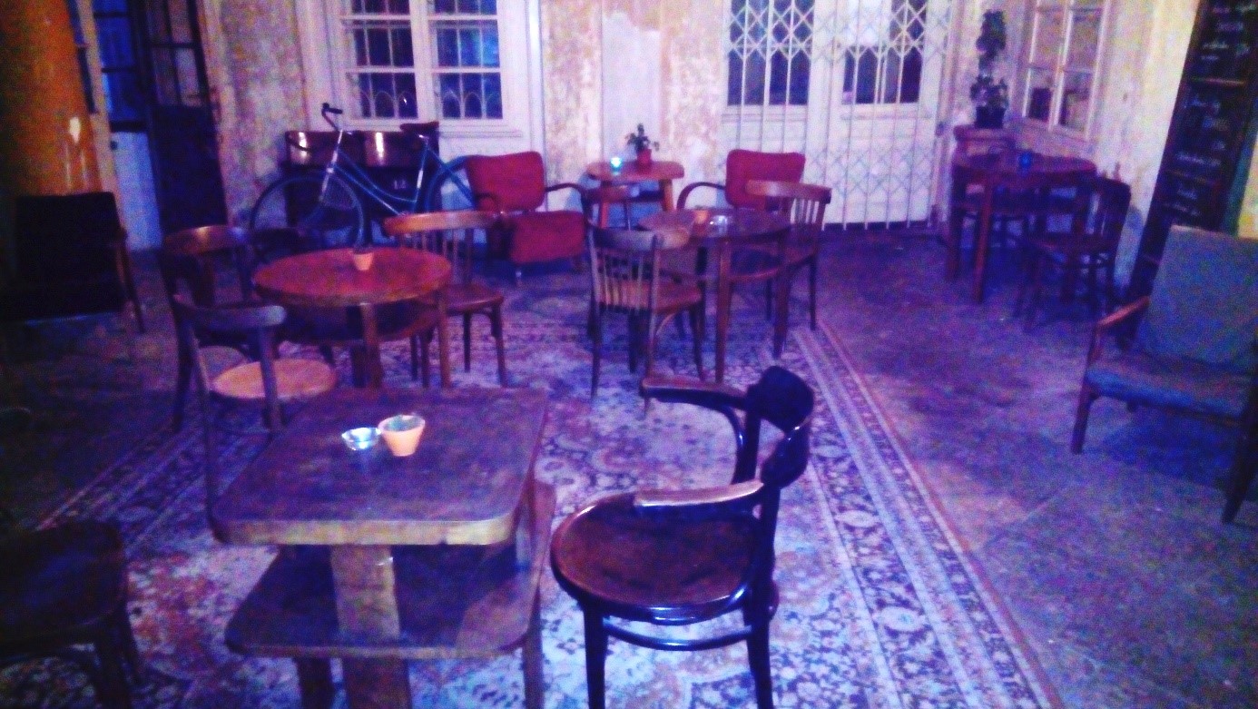 Mojim obľúbeným miestom je exteriér – priestor chodby, ktorý pod kaviareň taktiež patrí. Nachádzate sa v krásnych verejných priestoroch s rôznymi starodávnymi architektonickými prvkami. Táto chodba je zariadená ako klasický interiér, nechýba tu ani vintage piano. Tento hybrid medzi interiérom a exteriérom je unikátny a kaviarni dodáva jedinečnú atmosféru. Priestor je vyplnený malými kúzelnými detailmi (napríklad to, ako sú schody do kaviarne vysvietené čajovými sviečkami), ktoré dodávajú celku alternatívny ráz. Pre spomenuté príčiny sa Halmi stalo obľúbeným miestom pre umelcov, spisovateľov, hudobníkov, básnikov a ľudí, pre ktorých je estetika na vysokej priečke v ich hierarchií hodnôt.
