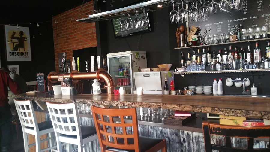Bar bol tiež lákavý. Bol taktiež drevený, rovnako ako stoly a jemne osvietený.