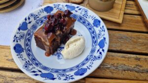 Reštaurácia Holotéch víška ponúka širokú škálu tradičných jedál, medzi ktoré patrí napríklad kačacia paštéta s jablkovým čatní, šúľance s makom, jahňacie stehno na červenom víne a krkovička so zemiakovou kašou. Na záver môžete ochutnať niektorý z ich výborných dezertov ako napríklad čokoládový koláč. Z nápojov si môžete vybrať čapovanú Kofolu, rôzne druhy limonád alebo kvalitné víno z vinárstva TAJNÁ. Káva, ktorú sme ochutnali, pochádzala od lokálnej značky Goriffee, ktorá je známa svojím zameraním na výberovú kávu a udržateľnosť. Po výbere z jedálneho lístka sme si objednali kačaciu paštétu, čokoládový koláč a cappuccino. Naše cappuccino bolo servírované v krásnej keramickej šálke s tradičným vzorom na drevenom podnose doplnené lyžičkou. Chuť bola výnimočne krémová, s bohatou penou a vyváženou chuťou kávy. Značka Goriffee pochádza zo Slovenska a je známa tým, že ponúka kávu z kvalitných svetových plantáží, pričom kladie dôraz na spravodlivý obchod a udržateľnosť. Každý detail tohto miesta od usmievavej a ochotnej obsluhy až po starostlivo pripravené jedlá nás presvedčil, že Holotéch víška nie je len obyčajnou reštauráciou, ale miestom, kam sa človek túži vrátiť znova a znova. Je to oáza pokoja a autentických zážitkov, kde sa spájajú chute Slovenska s tradičnou pohostinnosťou. Pri ďalšej návšteve tohto krásneho kraja si určite toto miesto nenecháme ujsť.
