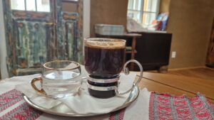 Tradičná kuchyňa je pravým srdcom hostinca. Podávajú sa tu jedlá pripravené z miestnych surovín, ako sú domáce marhuľové gule s tvarohom a rôzne sezónne špeciality, ktoré sú pripravované s láskou a rešpektom k tradíciám. Každé jedlo v sebe nesie kus dedičstva miestnych gazdiniek, ktoré ich predávali z generácie na generáciu. Našu návštevu sme si spríjemnili šálkou lahodného cappuccina, ktoré bolo servírované v krásnom porceláne s jemným kvetinovým vzorom. Nechýbala ani zalievaná káva, ktorú pripravujú z lokálnej značky ALTER-NATIV COFFEE praženej v neďalekom Novom Meste nad Váhom. Táto káva má špecifickú chuť, ktorá perfektne ladí s atmosférou hostinca – je plná, bohatá a s dotykom tradície. Hostinec sme navštívili už niekoľkokrát. Keď sme odchádzali, lúčili sme sa s pocitom, že sa sem opäť vrátime. Hostinec u Klačkov je miestom, kde sa spája história s prítomnosťou, kde čas plynie pomaly a kde každý návštevník nájde pokoj v objatí prírody a v útulných priestoroch plných lásky a starostlivosti.