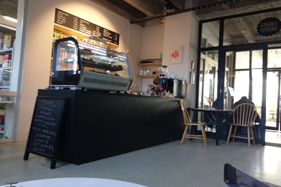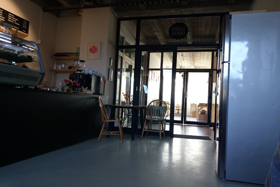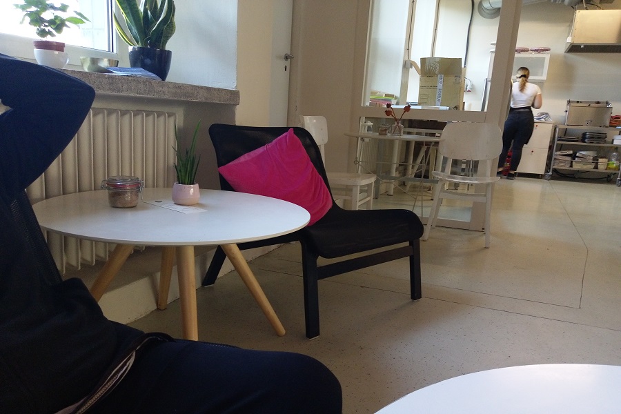 Prostredie kaviarne je brutálne. Ono vstupujete do staršej budovy, ktorá vyzerá, že prežila aj Lenina. Ale potom vstúpiť do starej Cvernovky. Stropy ošarpané. Je to také celé staré, rozostavané. Snažia sa to zmeniť. Nevravím. Opravujú to, ale im sa to aj páči. Ja nie som zrovna fanúšik týchto priestorov. Samotná kaviareň je už ale moderná, keď to tak poviem. Mne sa páči, že vidíte, čo pečú v tejto kaviarni a pečú to na mieste. Maličký bar a asi tri stoly. Ale to im pokojne stačí, lebo tu asi moc nechodí veľa ľudí sedieť. Skôr donášajú. Ale je to super spravené. Mne sa to celkovo páči. Sú tam aj nejaké obrazy a umenie na vás číha všade…