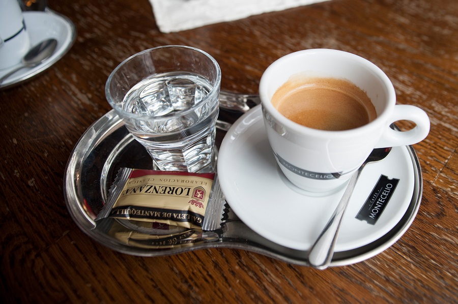Je obed, ale ja si dám len kávu. Čašníčka prišla hneď ako som si odložila kabát. Pekne sa usmievala a hlavne vedela čo mi priniesť, keď som si objednala „lungo“. O chvíľku bola káva na stole. Hneď fotím..veď pena tu nebude vždy. Káva bola dobrá, na začiatku sa mi zdala trochu kyslejšia, no ako som ju dlhšie pila, ten pocit zmizol a ostala mi len jemná, povzbudivá chuť kvalitnej kávy. Samozrejme, že som mala kávu bez mlieka a zaplatila som 1,50 eur. Ku káve som dostala pohárik s minerálnou vodou a škoricový keksík. Potešilo.