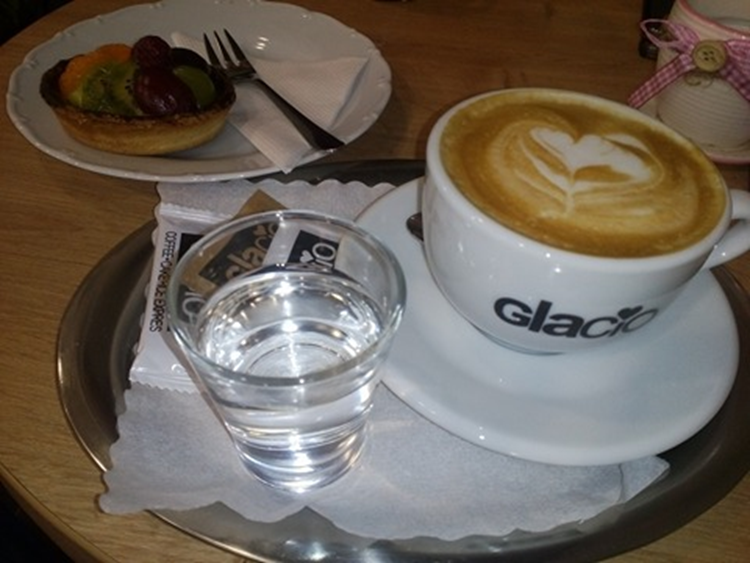 Už z diaľky vás kaviareň upúta úžasným farebným a voňavým pultom. Kaviareň ponúka sladké dobroty podľa dennej ponuky. Výber je naozaj bohatý. Od tradičných zákuskov, cez modernejšie tortičky, košíčky a sladké peny po suché vianočné pečivo či zmrzlinu. Ak ku káve radi maškrtíte, kaviareň Glacio je pre vás ideálna. A ak sa vám na sviatky nechce vypekať, určite si tu budete vedieť vybrať a kúpiť niečo sladké aj na doma. Ja som tentokrát zhrešila ovocným košíčkom, ktorý chutil výborne.