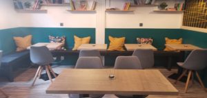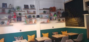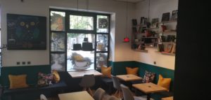 Nápad vytvoriť tento príjemný priestor vznikol v hlavách majiteľov počas „prvej vlny korony“, keď im vtedajšie opatrenia dočasne zavreli ich prvý podnik čajovňu Slnovrat. A majitelia zrazu mali najdlhšiu dovolenku za posledných pár rokov. Keďže nevedeli, čo so svojím voľným časom, začali premýšľať, čo v Piešťanoch chýba a akoby zároveň mohli spojiť všetky odvetvia, ktorým sa venujú. Dali hlavy dokopy s jazykovou školou Skypers a Hookafe je výsledkom. Vytvorili tak literárnu kaviareň, kde si v komornej atmosfére môžete požičať akúkoľvek z vystavených kníh. Čítaním si môžete spríjemniť chvíle pri chutnej káve, čokoláde alebo čaji. Podnik má niekoľko častí: kaviarenskú časť, pivničné priestory, kde podávajú vodné fajky, ktoré chutia jemne a bohato dymia. Ďalšou časťou je masérsky salón, ktorý sa nachádza na prízemí. V príjemnom masérskom salóne pri relaxačnej hudbe nájdete oddych pre svoje stuhnuté telo. A poslednou časťou je letná terasa. V interiéri nájdete pekný kaviarenský nábytok, ale aj pohodlné žlté kreslo. Miestnosť zdobia vankúše rôznych farieb, dominantou sú bezpochyby horčicové vankúše. Na policiach je uložené nespočetné množstvo zaujímavých kníh, gitara, sošky a veľa iného. Na stenách visia obrazy, osobne sa mi zapáčil obraz s veľkou sovou. Cez veľké okná môžete pozorovať dianie na Kukučínovej ulici. Za veľmi pútavý doplnok považujem, že v oknách sú nalepené nálepky s rôznymi motívmi. Nájdete tam napríklad kávu, pivo, sovu. Osvetlenie je vyrobené z klobúkov. Exteriér zaujme skôr svojou priestrannosťou, jednoduchosťou, krbom a grilom.