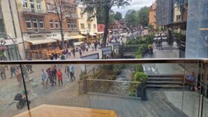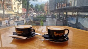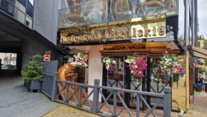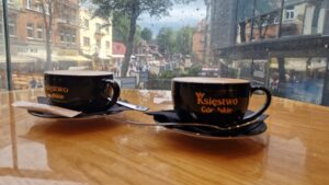 Pri prechádzke Zakopaným, kde sa spája prírodná krása Tatier s architektonickou eleganciou, sme narazili na zaujímavý podnik – kaviareň Księstwo Góralskie. Táto poschodová budova sa nachádza na rušnej ulici Krupówki, ktorá je srdcom spoločenského života Zakopaného. Už na prvý pohľad nás upútal presklený balkón s nádherným výhľadom na živé dianie v ulici. Nedalo sa odolať, a tak sme sa rozhodli vstúpiť dnu a preskúmať, čo tento elegantný podnik ponúka.