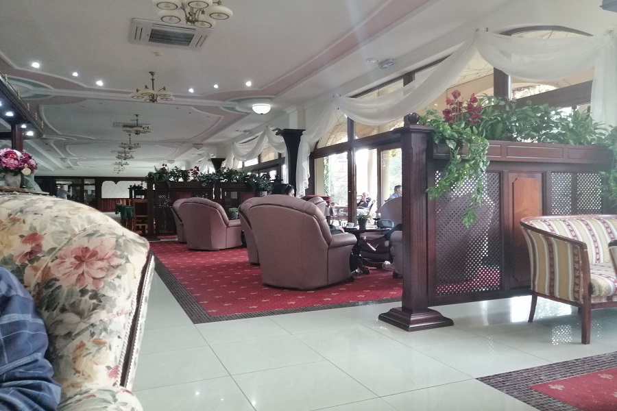 Prostredie kaviarne je také veľmi elegantné. Veď sme v hotely. Samozrejme. Logické. Ale aby som to trošku aj opísala. Nachádzajú sa tam štýlovo staršie sedačky, ktoré sú veľmi pohodlné a pôsobia veľmi elegantne, romanticky. Mne sa to aj páči. Všetci čašníci sú veľmi milí a snažia sa zanechať dobrý dojem. Tak by to malo byť.