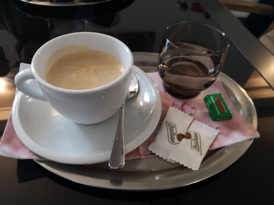 Káva pri nás pristála veľmi rýchlo. Oceňujem najmä podávanie. Ku každej šálke bol pohár vody, malá sladkosť a cukor. Priznám sa, neviem povedať akú značku kávy podávali, odpoveď koniec koncov nevedela ani pani majiteľka. Ktovie, ale rozhodne sa to dá zaradiť medzi tie piteľnejšie kávy. Piteľnejšia než instatná káva, ale od kvalitného espresa mala ešte poriadne ďaleko. Bola viac vodová, chuťovo v jednom tóne, ani príliš kyslá, ani príliš horká. Taká stredná cesta pre široké spektrum bežných kávičkárov – neoslní, ale ani výrazne neprekáža, o čom svedčí koniec koncov aj vysoký počet ľudí, ktorí kaviarničku navštevujú.