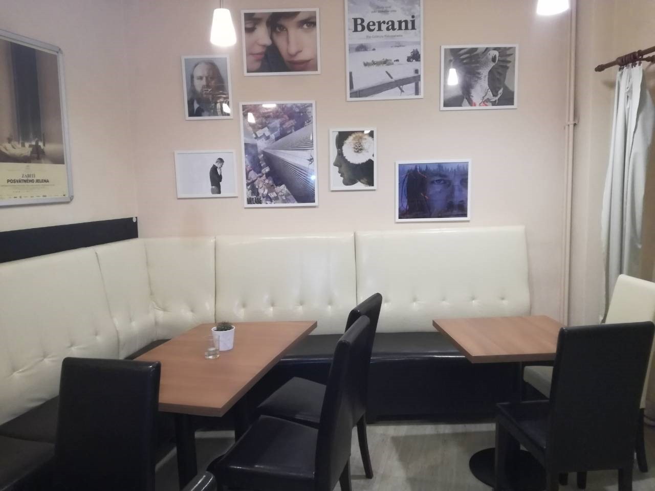 Priestorovo je kaviareň celkom štedrá, nachádzajú sa tu samostatne stojace stoly pre maximálne štyroch ľudí. Stoly sú však od seba naozaj ďaleko, takže každý sa tu cíti maximálne komfortne. Pre väčšie skupiny je v kaviarni vyčlenený oddelený priestor s lavicami. Po stenách sú zavesené obrazy filmových hrdinov, z bývalého krbu tu spravili vskutku neštandardnú knižnicu, ktorou sa môže pochváliť už len máloktorý podnik.