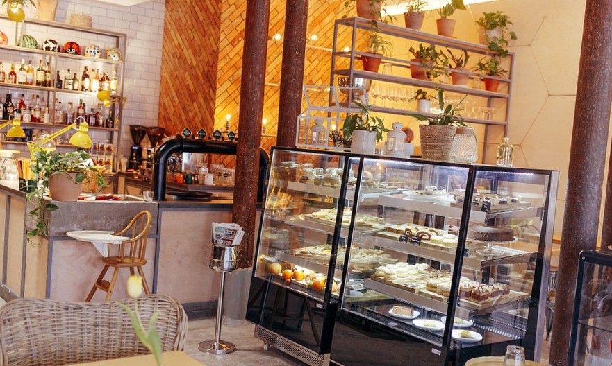 Keď vojdete dnu tak všimnete si, že kaviareň je zariadená veľmi zaujímavo a netradične. Pri dverách môžete vidieť na tabuliach s kriedou popísané rôzne citáty (buď od slávnych osobností alebo od rôznych ľudí). Kaviareň je predelená na viac častí ale len tak provizórne. Nenájdete tu žiadne rozdeľovacie klasické steny, ale nájdete tu napríklad regály s knihami, ktoré to rozdeľujú. Nájdu sa tu aj trošku vyvýšené miesta a na nich sú pripravené stoly. Každá časť kaviarne má niečo do seba. Jedna je viac tmavšia a modernejšia, druhá je osvetlená a viac starodávnejšie zariadená. Vzadu je tretia časť a tá je taká klasická. Veľmi dobré je to, že taktiež si tu viete pozrieť aké koláče majú v ponuke. Kaviareň má veľmi veľký obslužný pult na prípravu rôznych pokrmov a nápojov. Nápojový a jedálny lístok je veľmi kreatívne pripravený. Každá časť je označená inou farbou. Viete si tu vybrať aj raňajkové menu, obed, olovrant, nejakú maškrtu, alkoholické nápoje, horúcu čokoládu, kávy a aj nealkoholické nápoje.