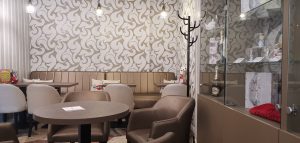 Promenada Kaviareň & Cukráreň nachádzajúca sa v srdci pešej zóny je malá príjemná kaviarnička. Posadiť sa môžete do pohodlných kožených kresiel v rôznych odtieňoch hnedej farby. Svoju kávu si môžete položiť na guľaté alebo štvorcové stolíky. Na stenách sa nachádza tapeta s ornamentmi. Taktiež v miestnosti nájdete veľkú presklenú vitrínu so suvenírmi. Barový pult je celkom dominantná súčasť priestoru a nájdete na ňom všetko možné od kúpeľných oplátok až po sladké maškrty pre najmenších. Podnik zdobia drobné dekorácie v podobne rôznorodých keramických misiek. Nachádza sa tu aj zmenšená socha piešťanského barlolámača. Moju pozornosť upútal pekný, ale opustený klavír. Kaviareň by rázom ožila, ak by sa z klavíra ozývali známe tóny. Aj keď nerada musím poznamenať, že na niektorých predmetoch, ako aj na spomínanom klavíri bol bádať prach. Zaujalo ma atypické osvetlenie, ktoré do tejto kaviarne použili.