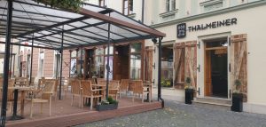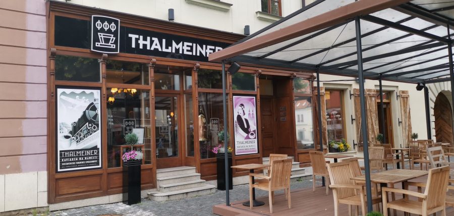Skôr než vás zavediem do štýlovej talianskej kaviarne z minulého storočia, dovoľte mi nazrieť trošku do histórie. Ako som sa mohla dočítať, už v 30. a 40. rokoch minulého storočia bola v Trnave kaviareň, ktorá sa volala Othon, neskôr dostala názov Európa. Túto kaviareň však všetci poznaliskôr pod názvom „U Thalmeinera“, podľa jej majiteľa. Podnik navštevovali mnohé osobnosti z Trnavy. V roku 1950 však komunisti pána Thalmeinera vyhnali. V časoch socializmu dostala názov Krym. Rodina Trnkovcov nadviazala na tradíciu predvojnovej kaviarne a do Trnavy navrátila časy minulé, keď v roku 2011 otvorili brány Thalmeinera. Kaviareň nesie názov podľa spomínaného kaviarnika Thalmeinera.