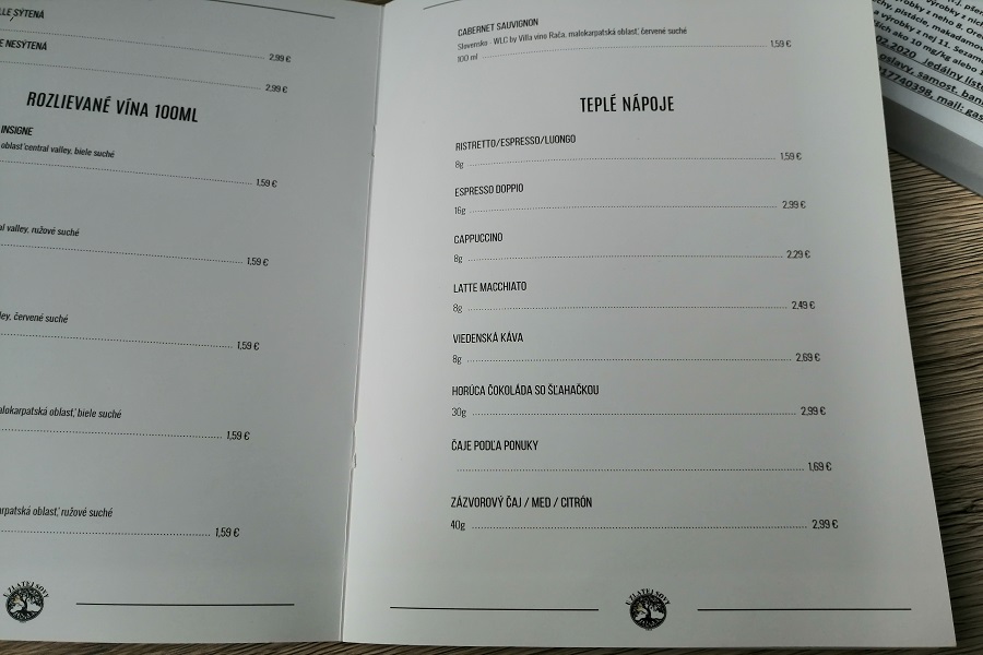 Ponuka je veľmi bohatá. Ako sme spomínali vyššie, tak sa jedná o reštauráciu a nie iba kaviareň. Táto prevádzka je veľmi všestranná. Nájdete tu skutočne dosť veľký výber jedla, alkoholu, nealka, no aj práve káv. Aj na fotkách môžete vidieť, že majú pomerne dosť veľký výber, keďže sa na to ani nešpecializujú.