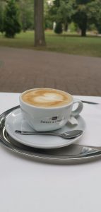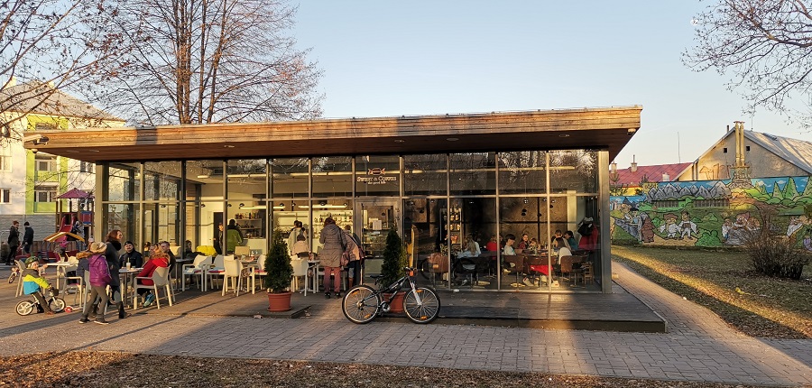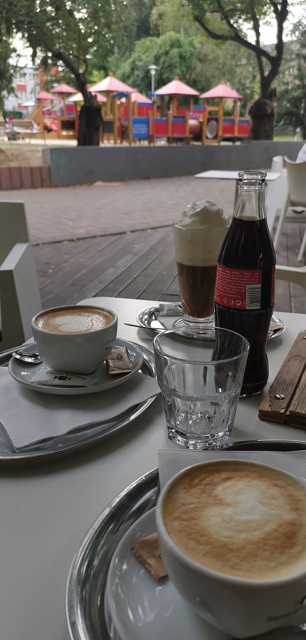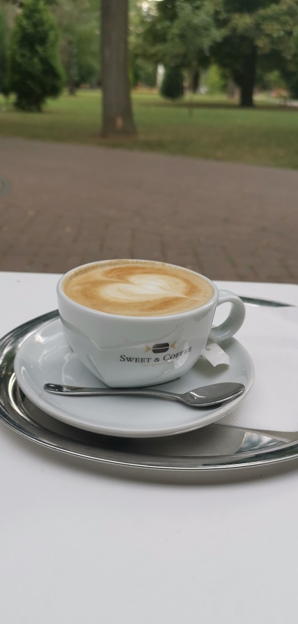 Tentokrát sme sa vybrali na kávu do Nového Mesta nad Váhom. Prešli sme od kostola cez námestie až po mestský park J. M. Hurbana. Spomenutý park je vyhľadávaným a obľúbeným miestom Novomešťanov. Do tohto parku sme išli cielene, pretože sme chceli navštíviť nám už známu kaviareň Sweet & Coffee. Možno je pre niekoho kaviareň v parku nepredstaviteľná. Treba si však uvedomiť, že mestský park nie je prirodzenou súčasťou prírody, je to umelo vytvorené miesto pre ľudí na oddych a rôzne iné aktivity. Bez vybudovania príslušného zázemia a vybavenia sa park stáva nepoužiteľný a stráca tak na význame. Prvým zámerom parku je predovšetkým zeleň, druhým je vybavenosť a spojivom sú samozrejme ľudia. Preto považujem za veľmi dobrý nápad, že sa investor rozhodol postaviť kaviareň práve v Hurbanových sadoch. Bolo by skvelé, ak by v každom meste vznikali podobné projekty. Za kaviarňou sa rozprestiera dlhý plot, ktorý je pomaľovaný rozprávkovými bytosťami, čo dodáva tomuto parku príjemný charakter. Oceňujem, že pri kaviarni je vybudované nové detské ihrisko. Táto detská zóna sa tiahne od kaviarne až po tribúnu. Mesto tak vytvorilo príjemné miesto, kde rodiny s deťmi zmysluplne trávia svoj voľný čas. Popritom ako sa deti hrajú na ihrisku, si môžu rodičia v kaviarni vypiť svoju voňavú kávičku.