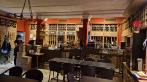 Bistro sa nachádza v malebnej uličke Blaha Lujza s popisným číslom 7. Touto ulicou približne každú hodinku premáva krásny červený turistický vláčik. Zaujímavosťou je, že jedna časť letnej terasy sa nachádza hneď pri budove a tú druhú nájdete cez cestu hneď oproti. Zákazník čakajúci na svoju objednávku môže doslova pozorovať ruch ulice. Naskytá sa im tak pohľad na premávajúce autá, turistický vláčik, cyklistov, ako aj prechádzajúcich ľudí po tejto čarovnej uličke. Takže si aj čašníci musia dávať pozor, keď obsluhujú hosťov na protiľahlej časti terasy. Terasa je zariadená jednoducho, útulne a po zotmení získava akési neopísateľné čaro. V exteriéri bistra použili drevený kaviarenský nábytok, no tu musím poznamenať, že sedenie by mohlo byť viac pohodlné. Aj napriek tomu, že na stoličke sú podušky, na komforte to moc nepridáva. Stoly zdobili kvetinové aranžmány. Vnútornú časť kaviarne som si nemala možnosť obzrieť. Tak som nazrela len cez okno, kde mi do očí udrel veľký krásny drevený kredenc skladajúci sa z viacerých častí, čo je samozrejme veľmi príznačné vzhľadom na názov kaviarne. Interiér je ladený v hnedých farbách a steny sú oranžové. Vnútorné priestory kaviarne na mňa pôsobili taktiež príjemne.