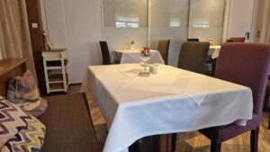Reštaurácia je známa nielen svojou vynikajúcou kuchyňou, ale aj útulným ubytovaním. Ponúka 5 dvojlôžkových a 2 jednolôžkové izby, ktoré sú zariadené jednoducho, no veľmi pohodlne. Každá izba má vlastnú kúpeľňu so sprchou, WC, satelitnú TV a balkón s výhľadom na okolitú prírodu. Súčasťou služieb je aj veľká slnečná terasa, trávnatá plocha na relax a možnosť parkovania priamo pred domom. Pre rodiny s deťmi je na požiadanie dostupné aj špeciálne vybavenie. Interiér reštaurácie kombinuje moderný dizajn s rustikálnymi prvkami, ktoré podčiarkujú jej tradičný charakter. Svetlé steny zdobia umelecké diela a maľby miestnych scenérií, zatiaľ čo drevené detaily a pohodlné sedenie dodávajú priestoru domácku atmosféru. Nás okamžite očaril príjemný pocit pohostinnosti, ktorý tento priestor vyžaruje.