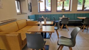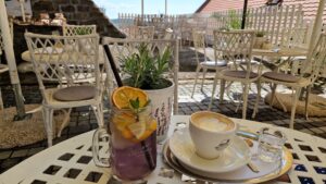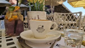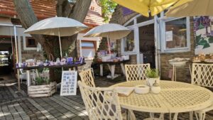 V ponuke okrem spomínaných produktov nájdete pouličné jedlá, levanduľové špeciality, osviežujúce limonády, remeselnícku zmrzlinu. Zmrzliny sú vyrábané ručne bez pridávania umelých prísad a iba z kvalitných surovín. Osobitná pozornosť je venovaná tým, ktorí dodržiavajú špeciálnu diétu. Samozrejme, ponúkajú aj alkoholické, nealkoholické, kávové nápoje. Zákusky a dezerty majú z vlastnej cukrárne Apátsági Rege Cukrászda. My sme si objednali levanduľovú limonádu, ktorá bola výborná a veľmi osviežujúca. Z kávových nápojov som siahla po obľúbenom cappuccine. Cappuccino bolo servírované v bielej elegantnej šálke, na ktorej bolo vyobrazené spomínané opátstvo. Šálka bola vskutku prekrásna. V podniku pripravujú vlastnú kávičku Abbey coffe. Káva je veľmi vyvážená a lahodná. Cappuccino a limonádu sme si vychutnali, ako sa patrí a pokračovali sme na prieskum Tihany.