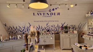 Naše prvé kroky nás smerovali na kávičku. Natrafili sme na milú kaviareň s názvom Lavender Garden. Kaviareň sa rozprestiera na ulici Kossuth Lajos u. 33. Lavender je skutočne rozprávková kaviareň. Milo ma prekvapilo, že pri vstupe do tohto podniku si môžete zadarmo načapovať levanduľovú malinovka bez ohľadu na to, či budete alebo nebudete ich hosťami. Samozrejme, sme neodolali a malinovku sme ochutnali, bola naozaj veľmi chutná. V tento pekný júlový deň sme sa usadili na letnú terasu. Terasa bola zariadená veľmi romanticky. Sedenie bolo kovové a natreté na bielo. Nad terasou boli natiahnuté svetielka, čo jej pridávalo na útulnosti. Na terase boli vystavené rôzne suveníry, ktoré prilákali nejedného turistu. Samotný názov prezrádza, že tu nájdete predovšetkým produkty z levandule alebo s levanduľovou tematikou. Tiež som si zakúpila magnetky a levanduľové mydlá. Okrem vonkajšej terasy kaviareň pozostáva aj z dvoch vnútorných priestorov. V prvej miestnosti nájdete modernú a vkusne zariadenú kaviareň. V druhej miestnosti sa rozprestiera zasa obchodík so suvenírmi. Som veľmi rada, že sme Lavender Garden neobišli.