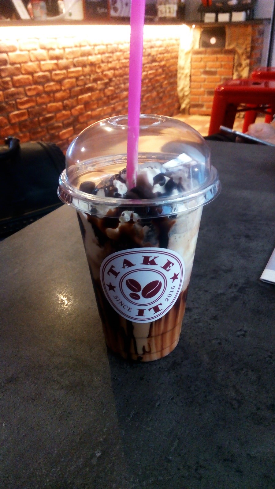 Take it je určite podnik hodný návštevy. Ich široký výber kávových špecialít ulahodí všetkým vrtochom zákazníkov. Netreba však zabúdať, že je to viac kávový fast food ako kaviareň, tj pravdepodobne nebude vašou voľbou ak si budete chcete posedieť a pokecať. To hodnotím ako objektívny fakt, určite nie ako negatívum. Ceny sú celkom sympatické, za moje latté som zaplatil 2,60€, čo je pomerne dosť, ale vzhľadom na objem, zloženie a kvalitu tekutiny je to primerané. Oceňujem kreativitu vedenia, ktoré prichádza s časovo obmedzenými týždennými či sezónnymi špecialitami. Návštevu odporúčam každému, veď konečne prišlo teplo, zoberte si nejakú dobrotu do ruky a poďte sa poprechádzať mestom.