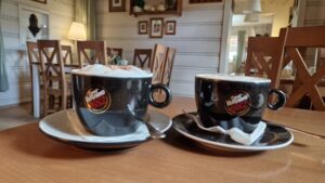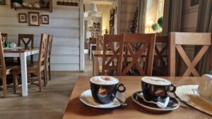 Jedálny lístok „Małej Szwajcarii“ ponúka širokú škálu pokrmov inšpirovaných švajčiarskou kuchyňou. Medzi najobľúbenejšie jedlá patria fondue a raclette, ktoré sú servírované so syrom a čerstvými surovinami. Okrem toho v menu nájdete aj rôzne špeciality ako „Danielove krokety“, ktoré sú plnené kuracím mäsom, pohánkou a cibuľou, podávané s bohatou hubovou omáčkou. Reštaurácia sa zameriava na kvalitné a čerstvé ingrediencie, pričom ponúka jedlá, ktoré sú nielen chutné, ale aj vizuálne atraktívne. Nápojový lístok ponúka široký výber teplých aj studených nápojov. Na výber sú rôzne druhy čajov pripravených z čerstvých bylín a ovocia, ako aj široká ponuka kávy. Okrem klasického espressa či latte si môžete vychutnať kávové špeciality ako „Kawa po Śnieżna“ – káva so šľahačkou alebo „Kawa po Szwajcarsku“ – švajčiarska káva. Ak máte radi sladšie nápoje, horúca čokoláda je tiež v ponuke. Pri našej návšteve sme si objednali cappuccino, ktoré bolo servírované v čiernych šálkach značky Caffé Vergnano 1882. Káva mala krásnu penu, ktorá zanechala dojem už pri prvom pohľade. Aj keď sme mali menšie očakávania ohľadom servírovania, pretože nebolo úplne dokonalé, chuť samotného cappuccina nás prekvapila. Káva bola silná, ale vyvážená, s jemnými orieškovými tónmi, ktoré zanechali v ústach príjemnú dochuť. Značka Caffé Vergnano pochádza z Talianska a bola založená v roku 1882 v mestečku Chieri neďaleko Turína. Ide o jednu z najstarších talianskych kávových značiek, ktorá si udržala rodinný charakter a tradíciu kvalitného praženia kávy už viac ako 140 rokov. Vergnano je známa svojou vášňou pre výber tých najkvalitnejších kávových zŕn a ich pomalým pražením, čo dodáva ich káve jedinečnú chuť a arómu, ktorú sme si mohli vychutnať aj my. Obsluha v „Małej Szwajcarii“ bola veľmi príjemná a milá. Celkový zážitok bol veľmi príjemný a atmosféra tejto reštaurácie nám poskytla chvíle pokoja a relaxu uprostred krásnej tatranskej prírody. „Mała Szwajcaria“ je miesto, kde sa história spája s moderným kulinárstvom a ak sa ocitnete v Zakopanom, určite by ste toto čarovné miesto nemali vynechať.