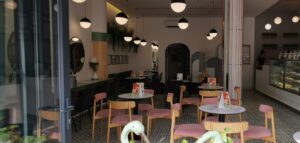Jej vonkajšia terasa je zariadená elegantným a pohodlným sedením, kde biele stoličky a stoly dopĺňajú veľké slnečníky, ktoré poskytujú tieň počas horúcich letných dní. Terasa je ohraničená črepníkmi s okrasnými rastlinami, čo vytvára útulnú atmosféru, kde si môžete v pokoji vychutnať svoju kávu či dezert. Interiér kaviarne Moja Srdcovka je vkusne zariadený v modernom štýle. Pohodlné stoličky a stoly sú farebne zladené do príjemných pastelových odtieňov, ktoré dodávajú priestoru elegantný a útulný vzhľad. Na stenách visia zrkadlá a minimalistické dekorácie, ktoré ešte viac umocňujú príjemnú atmosféru. Jemné a útulné osvetlenie prispieva k celkovému pozitívnemu zážitku z návštevy.